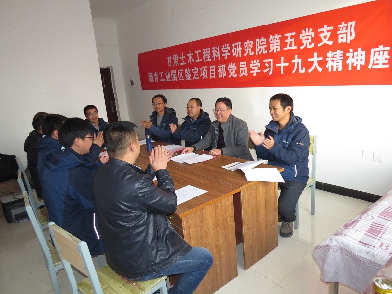 2017年12月15日,我公司黨委第五黨支部藏青工業(yè)園區(qū)房屋鑒定項目部黨員學(xué)習(xí)十九大精神組織生活會,在格爾木市工地項目部辦公室召開。我院黨委委員、副院長安貴倉同志及項目部黨員和其他同志參加了會議。會上,該項目部三名黨員結(jié)合十九大精神對自己的工作及學(xué)習(xí)情況進(jìn)行了交流發(fā)言,結(jié)構(gòu)抗震所所長劉恒鎮(zhèn)同志對該項目部近期工作進(jìn)行了安排部署,安貴倉同志進(jìn)行了總結(jié)發(fā)言,他強調(diào),我們一定要認(rèn)真領(lǐng)會貫徹學(xué)習(xí)十九大精神,發(fā)揮黨員的模范帶頭作用,當(dāng)前項目部的各位黨員同志一定要講奉獻(xiàn),勇于擔(dān)當(dāng),用牢不可破的思想信念為自己鼓勁,克服高寒環(huán)境帶來的不利因素,更好更快地完成該房屋鑒定項目。