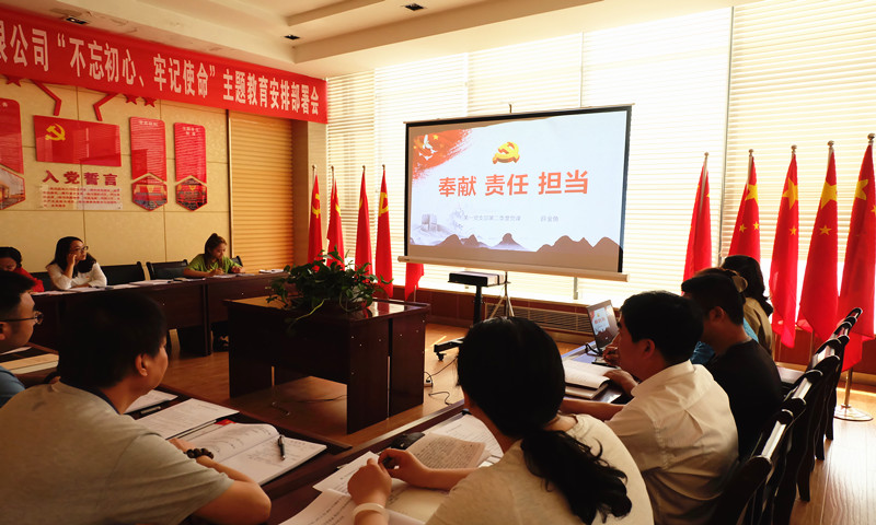 會議共安排八項議程,一、由徐曉東同志作2019年第二季度工作報告;二、黨課活動:薛金魚同志講黨課《奉獻 責(zé)任擔(dān)當(dāng)——做新時代合格共產(chǎn)黨員》;三、主題黨日活動:集體觀看《時代楷模——張富清》先進事跡紀(jì)錄片;四、支部書記徐曉東同志宣讀第一黨支部“不忘初心、牢記使命”主題教育活動總體安排;五、支部干事陳文文同志宣讀“不忘初心、牢記使命”主題教育活動實施方案;六、支部組織委員張茂玲同志通報六月份理論學(xué)習(xí)情況檢查結(jié)果;七、黨委書記董紅健同志根據(jù)黨委“不忘初心、牢記使命”主題教育調(diào)研工作的要求,對第一黨支部所屬部門進行工作調(diào)研。八、全體參會人員合唱“沒有共產(chǎn)黨就沒有新中國”慶祝中國共產(chǎn)黨建黨98周年。