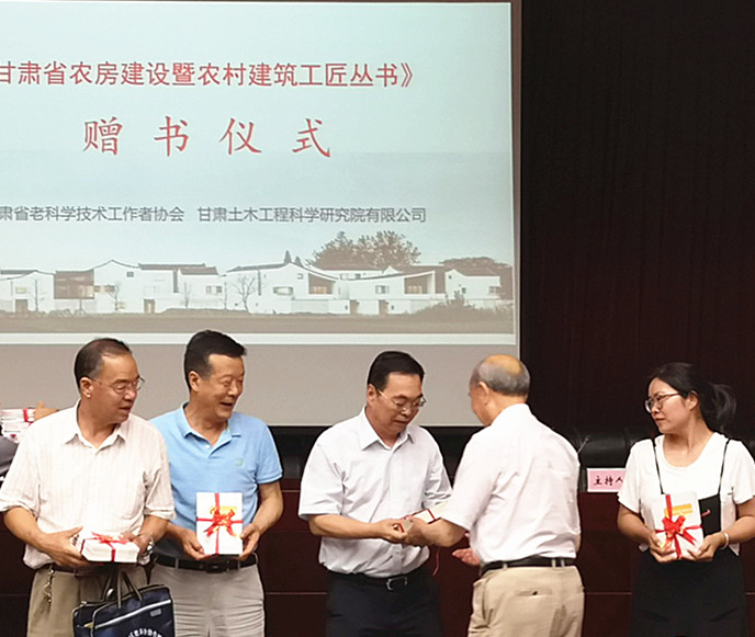 由我公司和甘肅省老科學(xué)技術(shù)工作者協(xié)會共同主編完成的《甘肅省農(nóng)房建設(shè)暨農(nóng)村建筑工匠叢書》(以下簡稱《叢書》)于2019年7月正式出版發(fā)行,并于7月30日在蘭州舉行了贈書儀式。甘肅省科協(xié)、省市發(fā)改、資源、環(huán)保、住建、工信、科技、墻改等政府部門的代表,以及甘肅省土木建筑協(xié)會、省建材行業(yè)協(xié)會等相關(guān)協(xié)會的代表共120多人參加了本次儀式。甘肅省老科學(xué)技術(shù)工作者協(xié)會會長劉祖和和公司黨委書記、董事長、總經(jīng)理董紅健為大家進(jìn)行現(xiàn)場贈書。