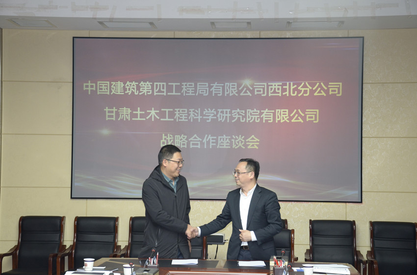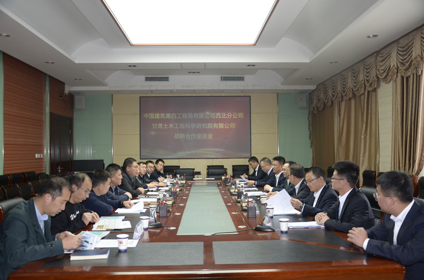 何江紅董事長表示中國建筑第四工程局有限公司西北公司在西北五省區(qū)、內(nèi)蒙古、山西等地區(qū),擔(dān)負(fù)“開拓西北事業(yè)、構(gòu)筑四局品牌”的重大使命,強(qiáng)勢開拓以西安、蘭州為中心的核心區(qū)域市場。依托中建集團(tuán)及中建四局雄厚的資金、技術(shù)、人才資源和管理優(yōu)勢,大力發(fā)展基礎(chǔ)設(shè)施、高端房建、投資建造等領(lǐng)域,不斷增強(qiáng)誠信履約能力,努力展現(xiàn)新作為、彰顯新?lián)?dāng)、展示新形象。甘肅土木工程科學(xué)研究院有限公司作為西北地區(qū)土木工程建設(shè)領(lǐng)域?qū)I(yè)門類齊全、科研特色鮮明、資質(zhì)等級較高、技術(shù)優(yōu)勢領(lǐng)先、綜合實(shí)力雄厚的國有建筑科研高新技術(shù)企業(yè)。中國建筑第四工程局有限公司西北公司愿與甘肅土木工程科學(xué)研究院有限公司通過雙方更廣領(lǐng)域、更深層次和更高水平的合作,實(shí)現(xiàn)資源共享、優(yōu)勢互補(bǔ)、互利共贏,促進(jìn)企業(yè)高質(zhì)量發(fā)展。