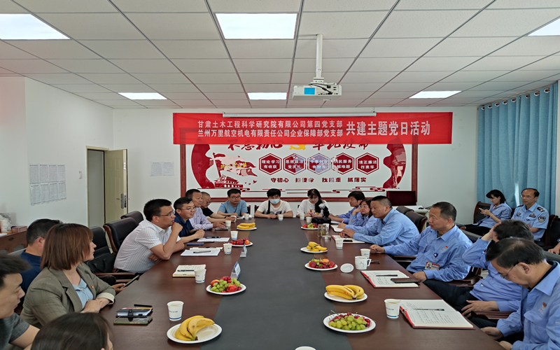 為發(fā)揮黨支部戰(zhàn)斗堡壘作用,實現(xiàn)黨組織優(yōu)勢互補,推動構(gòu)建“資源共享、優(yōu)勢互補、互相促進、共同提高”的黨建工作格局,根據(jù)黨史學習教育相關(guān)要求,5月26日下午,公司第四黨支部與蘭州萬里航空機電有限責任公司企業(yè)保障部黨支部聯(lián)合開展了共建主題黨日活動。公司黨委班子成員張磊、安貴倉,蘭州萬里航空機電有限責任公司黨委班子成員、雙方黨支部書記、相關(guān)職能部門和項目負責人參加。