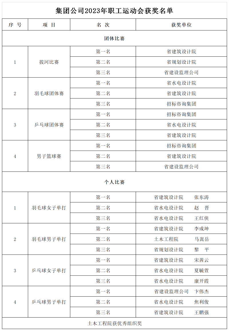 (乒乓球團(tuán)體賽一、二、三等獎(jiǎng))