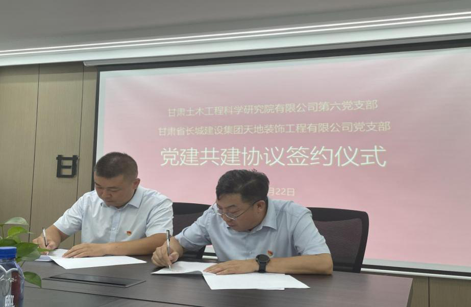 為深入學習貫徹黨的二十屆三中全會精神,加強基層黨建工作,2024年8月22日,公司第六黨支部與甘肅省長城建設集團天地裝飾工程有限公司黨支部以甘肅省機關事務管理局房屋統(tǒng)建管理中心所屬“原重點工程公安局辦公樓維修改造項目”為載體,在長城建設集團開展了“黨建共建”活動,雙方開展座談交流并舉行了黨建共建協議簽約儀式。