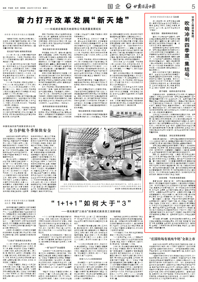 甘肅工程咨詢集團堅定向改革要動力要活力,加快向市場化程度高、綜合競爭力強、具有自主造血能力的國有企業(yè)轉(zhuǎn)型邁進。在開展對標一流管理提升、質(zhì)量提升、價值創(chuàng)造、品牌建設(shè)、企業(yè)家培育等專項行動等方面取得實實在在的成效。