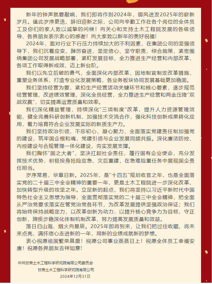 甘肅土木工程科學(xué)研究院有限公司2025年新年致辭