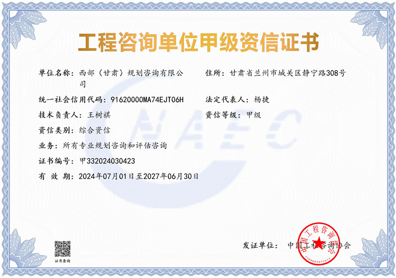 6月下旬,經(jīng)中國(guó)工程咨詢協(xié)會(huì)評(píng)審,甘肅工程咨詢集團(tuán)旗下西部(甘肅)規(guī)劃咨詢有限公司,成功取得工程咨詢單位綜合甲級(jí)資信和7項(xiàng)專業(yè)甲級(jí)資信,實(shí)現(xiàn)了我省工程咨詢“綜甲”從無(wú)到有的歷史性突破。西部(甘肅)規(guī)劃咨詢公司是甘肅工程咨詢集團(tuán)著眼深化改革、優(yōu)化資源配置、培育發(fā)展新業(yè)務(wù)而創(chuàng)建的綜合咨詢技術(shù)服務(wù)企業(yè)。公司圍繞貫徹落實(shí)國(guó)家重大戰(zhàn)略和全省發(fā)展規(guī)劃,組建專家智庫(kù)團(tuán)隊(duì),主動(dòng)開(kāi)展戰(zhàn)略性、前瞻性研究,先后高質(zhì)量完多項(xiàng)重大咨詢?nèi)蝿?wù)。