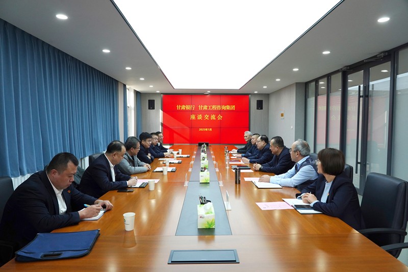 1月15日,甘肅工程咨詢集團(tuán)黨委書(shū)記、董事長(zhǎng)張佩峰與來(lái)訪的甘肅銀行黨委書(shū)記、董事長(zhǎng)劉青就深化銀企合作座談交流。甘肅銀行領(lǐng)導(dǎo)王錫真、杜晶,甘肅工程咨詢集團(tuán)領(lǐng)導(dǎo)成少平參加。