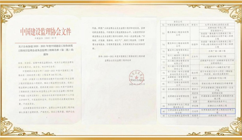 項目榮獲中國建設工程魯班獎,項目總監(jiān)理工程師榮獲“先進個人”榮譽稱號