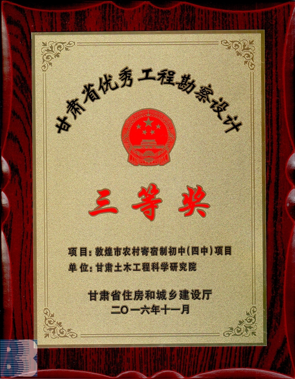 《敦煌市農(nóng)村寄宿制初中(四中)項目》(2016年度甘肅省優(yōu)秀工程勘察設計三等獎)
